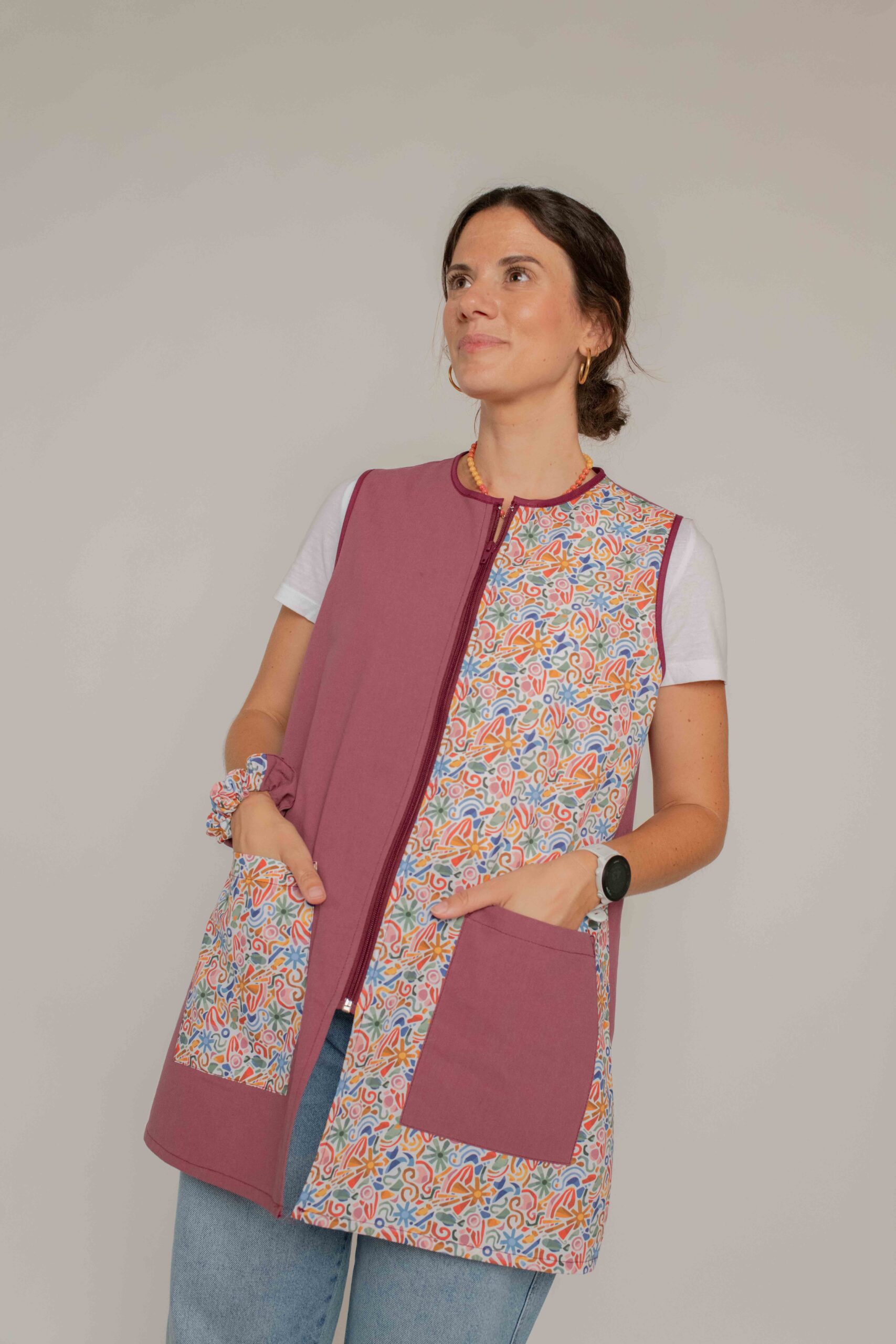 Color, alegría y comodidad se dan la mano en esta bata de maestra Maui, un diseño pensado para maestras que buscan destacar con estilo en el aula. Su combinación de tonos rosas con formas geométricas coloridas aporta un aire moderno, creativo y divertido, ideal para transmitir energía positiva a tus alumnos y alumnas.