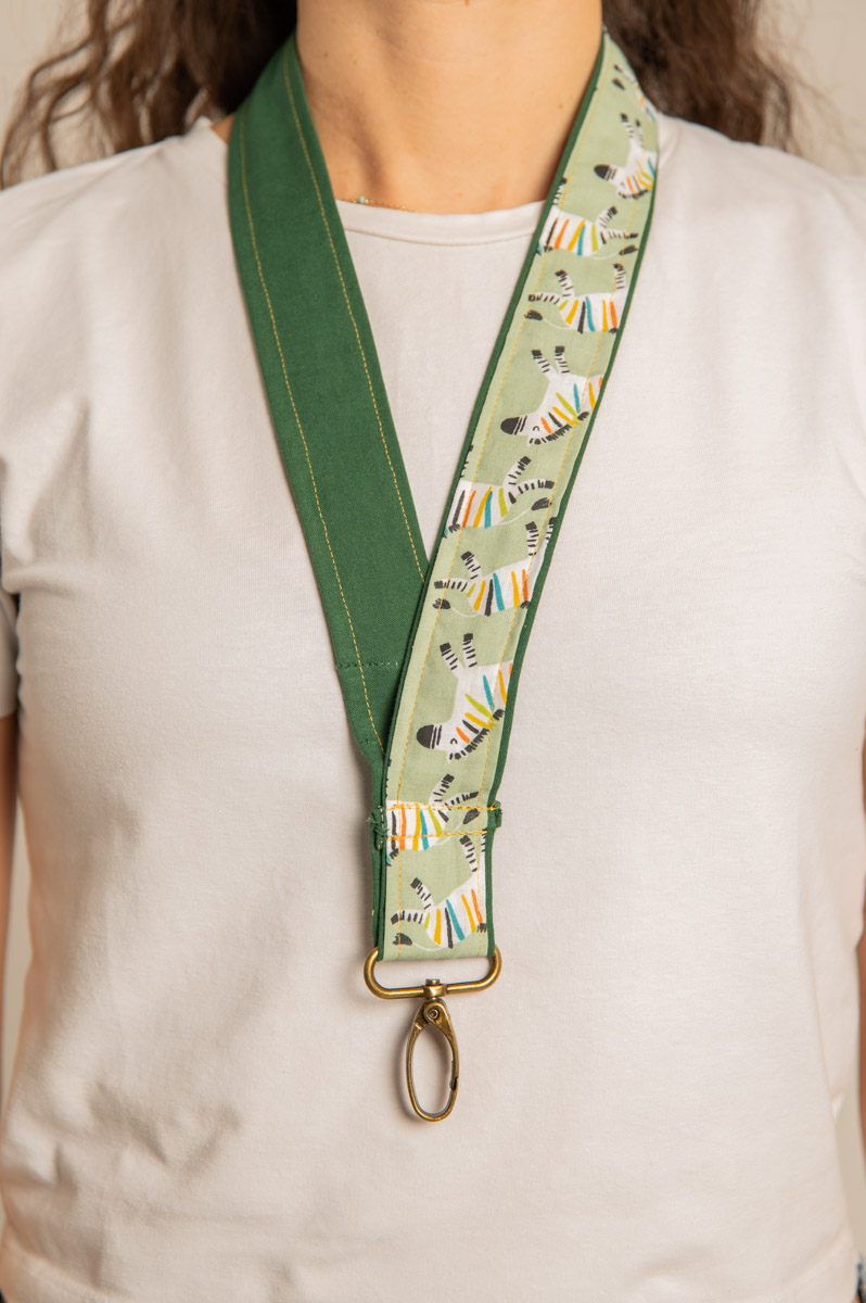 El lanyard ZEBRA combina diseño y practicidad para maestras. Inspirado en la bata ZEBRA, este accesorio con tela verde lisa y estampado de cebras es perfecto para llevar tus tarjetas, llaves o identificaciones con un estilo único.